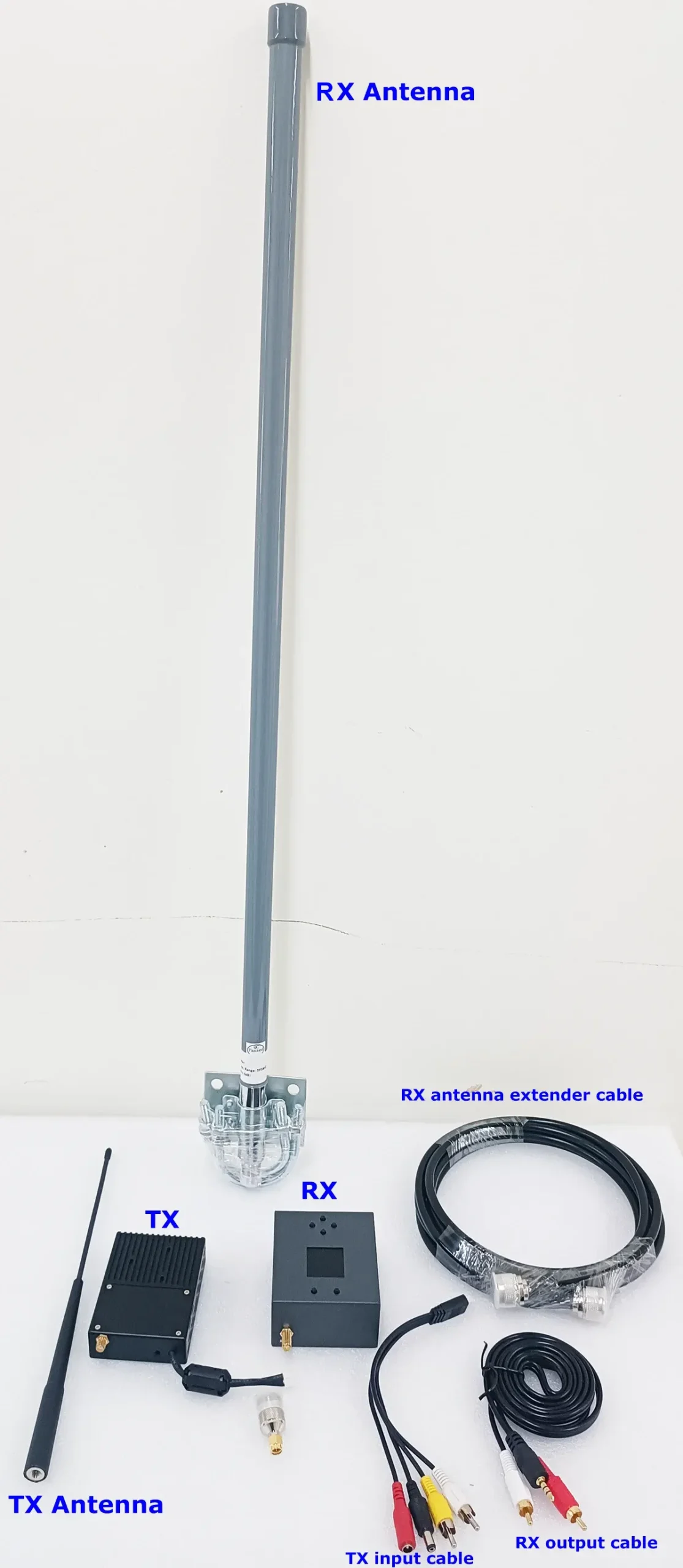 The client told us that his application details, the transmitter and receiver, are both used on the ground. In order to enhance the wireless transmission distance and avoid other signal interference, I recommend that both the transmitter and receiver antennas use 1.8-meter fiberglass antennas.