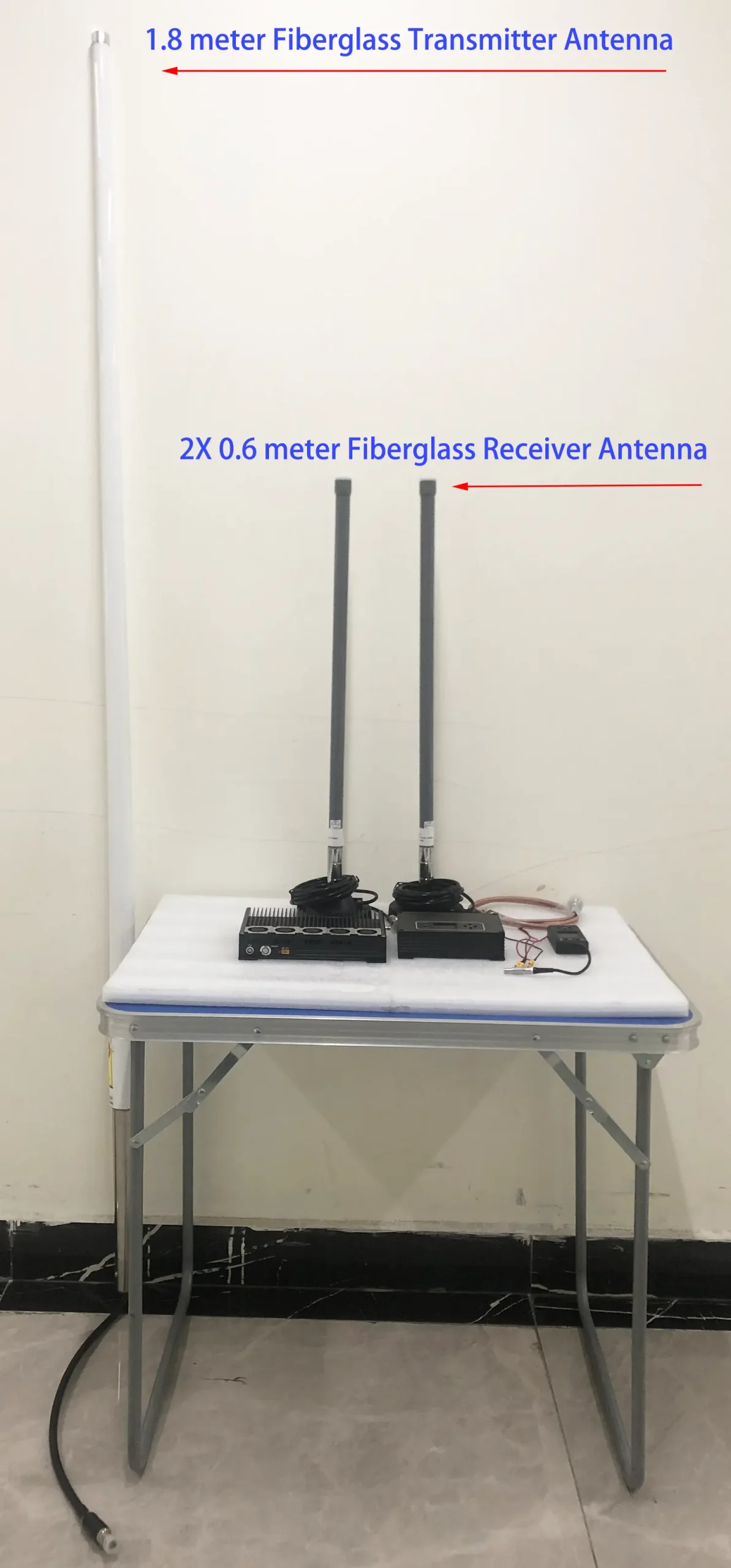 A: Vzhledem k tomu, že váš vysílač a přijímač se používají na zemi, na rozdíl od dronů, výška vysílače a přijímače se velmi liší. Doporučuje se použít 10W PA vysílač pro 10 kilometry. Musíte také vzít v úvahu, že váš přijímač je nainstalován ve voze, a neustále se pohybuje vysokou rychlostí. Stabilitu signálu na přijímači může zajistit pouze vysílač s vysokým výkonem.