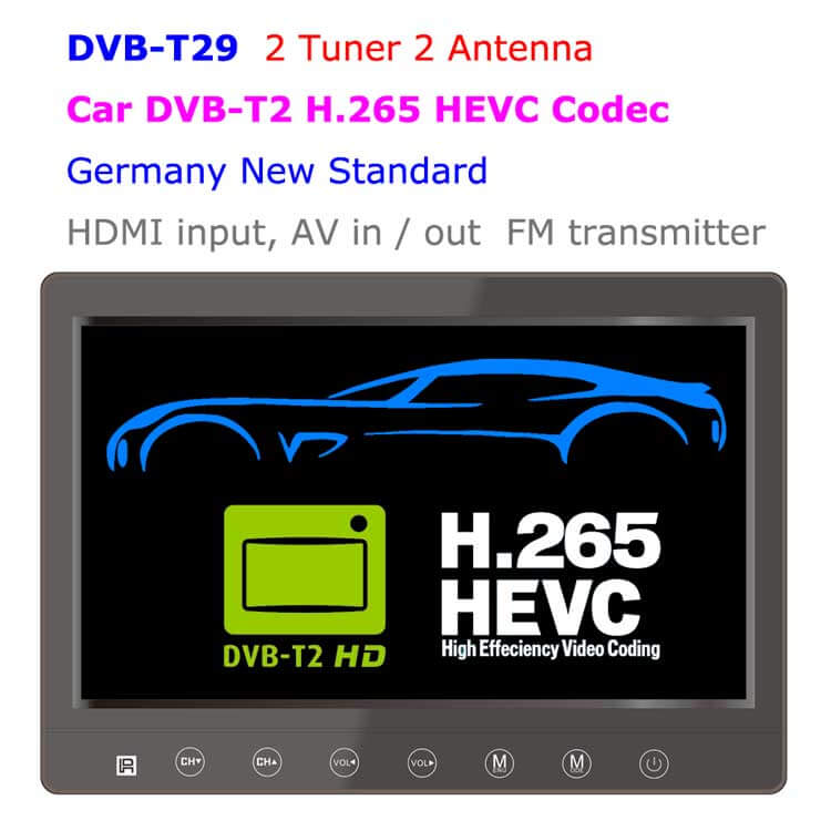 9 δέκτη ίντσα αυτοκινήτου DVB-T2 H265 TV