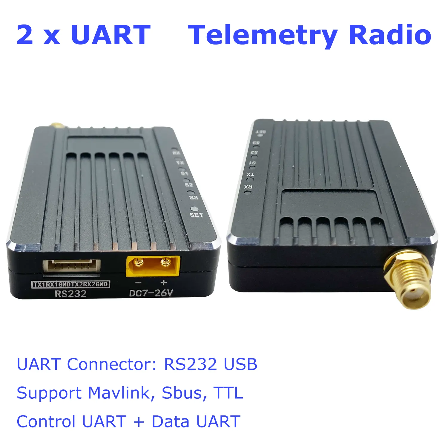 Ο ασύρματος πομποδέκτης 2X UART υποστηρίζει αλλαγή 2X TTL και 2X RS232 στο μεταλλικό κουτί.