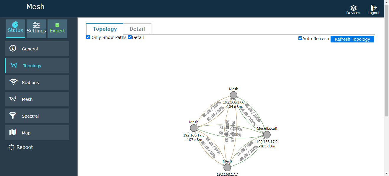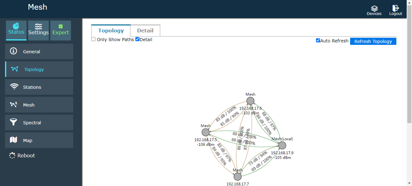 Mapa de topología: (La actualización automática está desactivada de forma predeterminada para ahorrar ancho de banda., puedes comprobar la actualización automática)