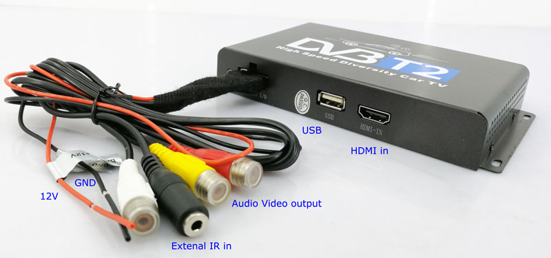 - Connecting Terminal: Ակտիվ ուժեղացուցիչ ալեհավաք մուտք jack (3.3V մատակարարման), Car իշխանությունը մուտք jack, R / L Աուդիո CVBS Video արտադրանքի Jack, Արտաքին հեռակառավարման IR լարը, USB բարելավում Socket, HD Բարձր սահմանումը արտադրանքի Jack.
