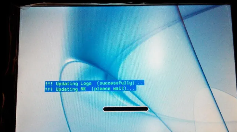 - Włóż kartę SD „nk.bin” do gniazda GK7000, aby dać moc GK7000. Jak pokazano na poniższym obrazku, wyświetlić pasek postępu aktualizacji. Proszę poczekać do 100%.