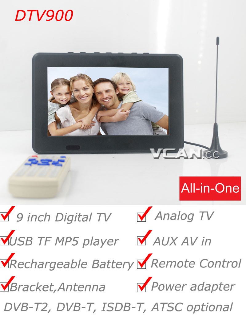 9 polegadas TV Digital (DVB-T2, DVB-T, ATSC, ISDB-T)