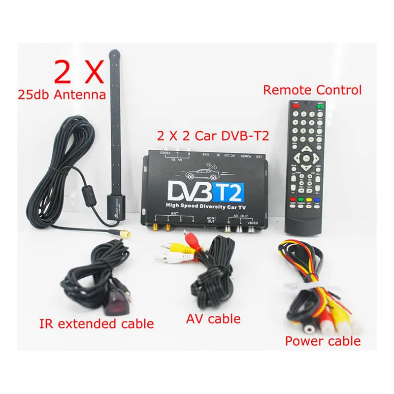 set-top box carro DVB-T2 sintonizador de TV diversidade receptor digital + Antena, apoio descodificador H.265 HEVC