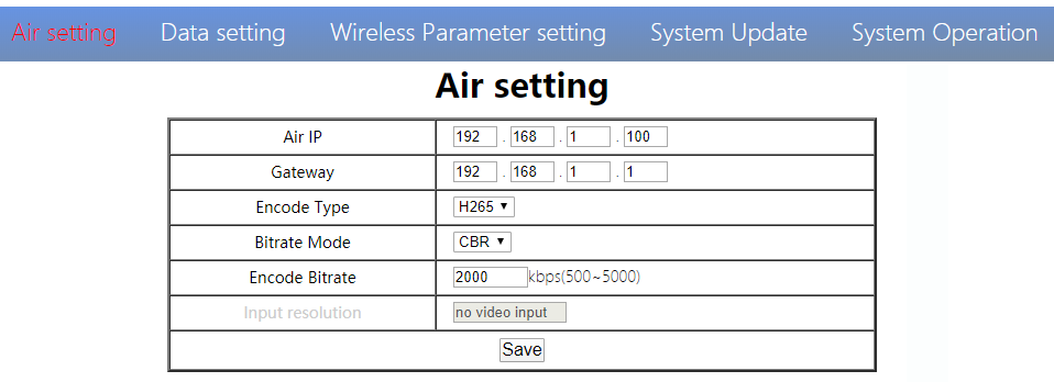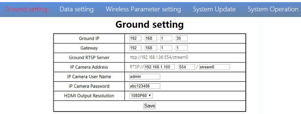 | Адрес IP-камеры | По умолчанию 192.168.1.100, IP-адрес кодера воздушного блока. | Пользователи могут изменить адрес своей IP-камеры. |