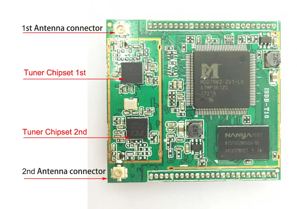พร้อมจูนเนอร์สองตัว, เสาอากาศสองอัน, คุณสามารถติดตั้งเสาอากาศทางด้านซ้ายและด้านขวาของรถได้. เมื่อรถวิ่งเร็ว, เมื่อเสาอากาศอันหนึ่งพลาดสัญญาณทีวี, เสาอากาศอื่นจะเป็นสำรอง, เพื่อให้แน่ใจว่าภาพทีวีมีความเสถียรและไม่มีภาพโมเสค.